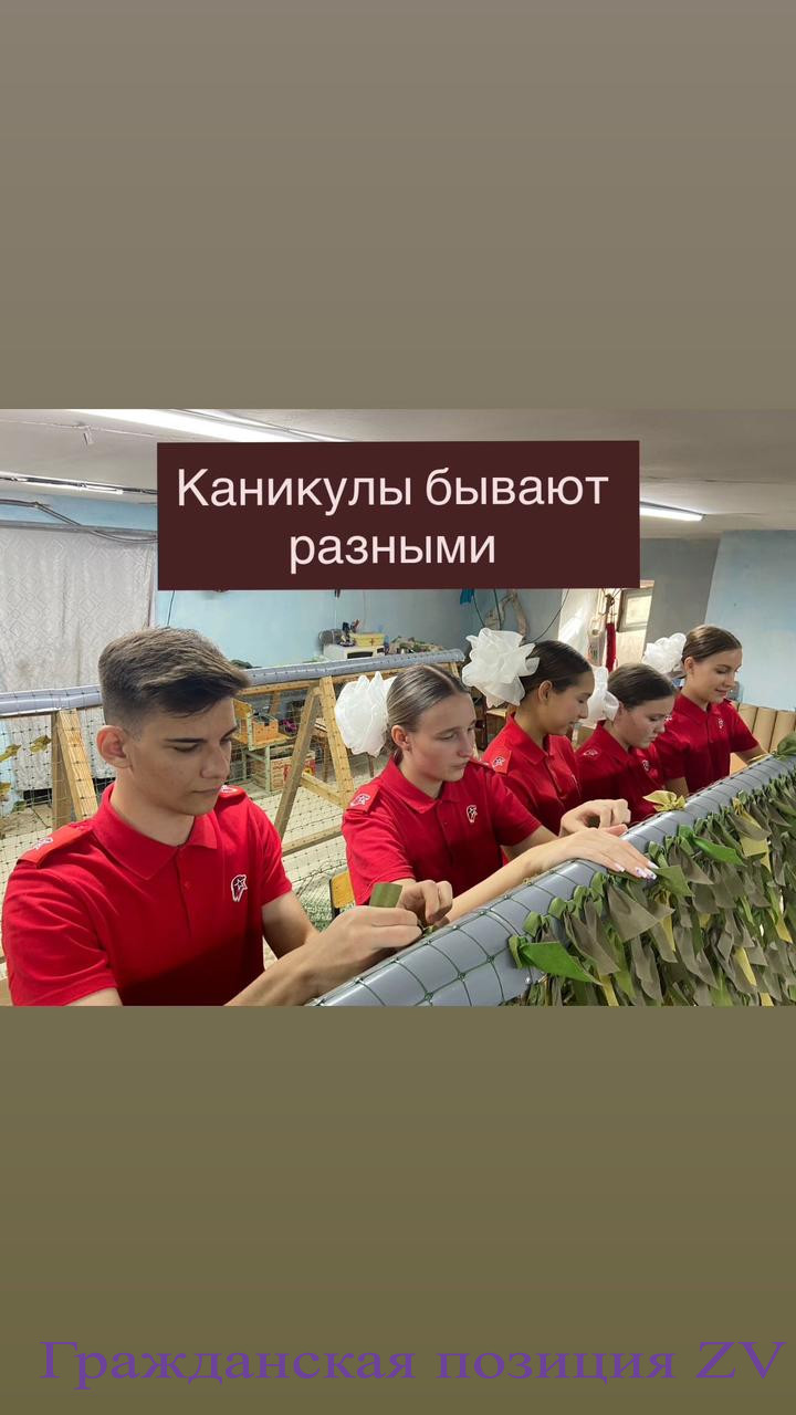Их каникулы — это не диван и сериалы. Их каникулы — это тихий гул в мастерской, уверенные движения рук и важная, очень нужная работа. Они плетут маскировочные сети.